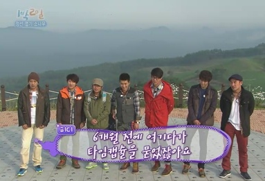 | KBS 1박 2일 정선 타임캡슐공원 방문6개월 후<1박 2일 408회 영상보기> 2012년 10월 14일 영상 (시작부터 ~ 17분까지)6개월 전